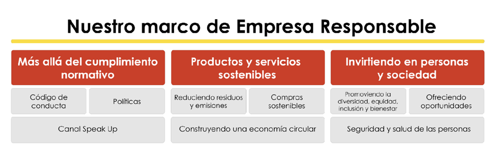 Nuestro marco de empresa responsable engloba la gobernanza, la sostenibilidad y la sociedad y personas.